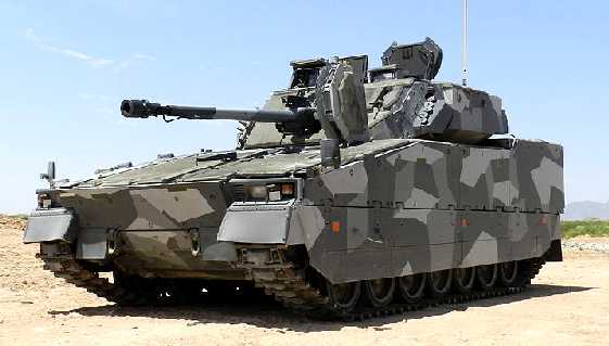 | Note: | Véhicule de combat d'infanterie lourd suédois qui se veut une amélioration du CV-9030, avec un blindage plus épais, un blindage dorsal pour contrer les attaques par le haut, un nouveau système de tir digital, et un nouveau canon Bushmaster plus puissant. |